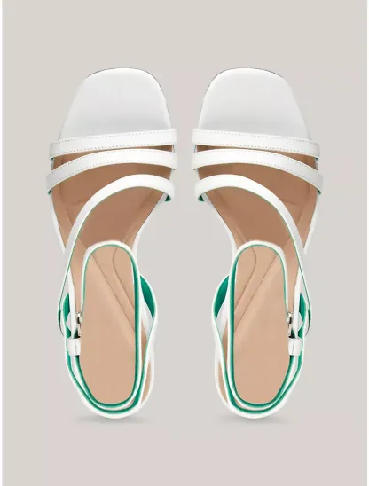 - Ankle strap with buckle closure.